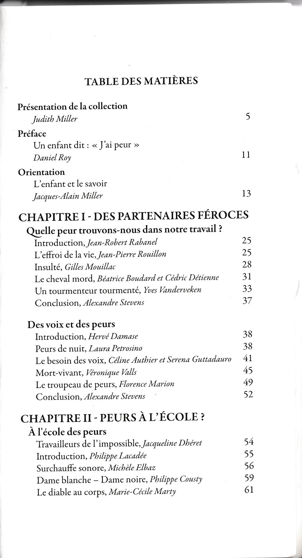 Этот труд исследует место, которое занимает страх в жизни ребёнка сегодня, исходя из слов ребёнка, тех которые могут быть восприняты, как в лечении с психоаналитиком, так и от воспитателей в специальных институциях или от учителей в школе.